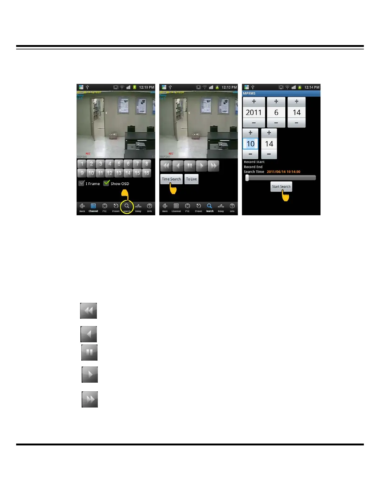 (2) Time Search : Click the “Time Search” button to search the time to playback.