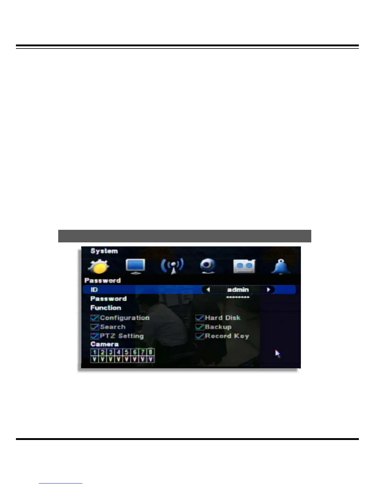 [2] Password : Input the new P/W for the selected ID. (Max. 8 digit)