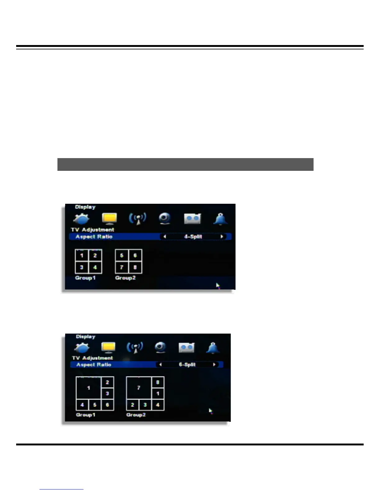 There are 2 kinds of split modes in 4 split and channel selection is available.