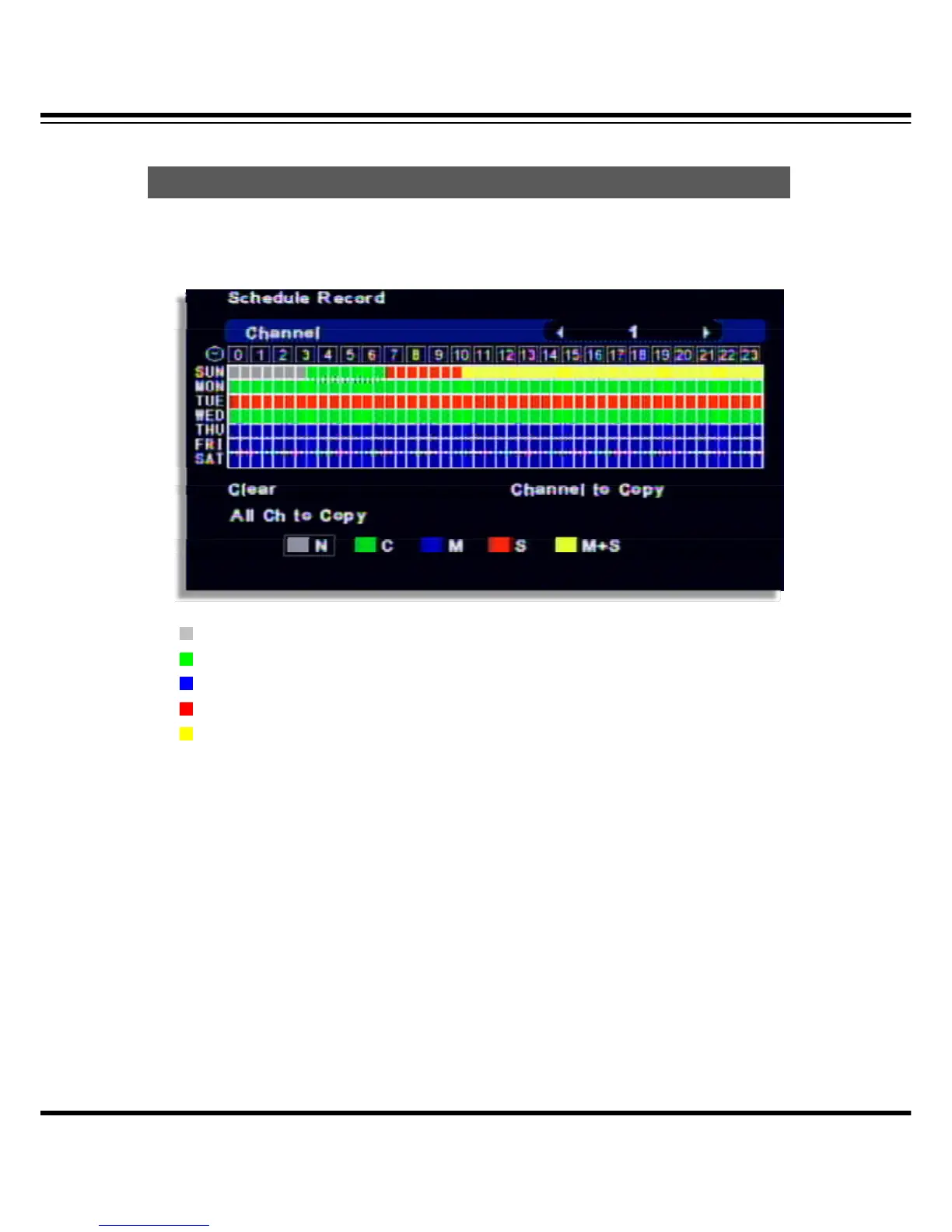 For schedule recording, it can be setup as per the day/date/time and channel.