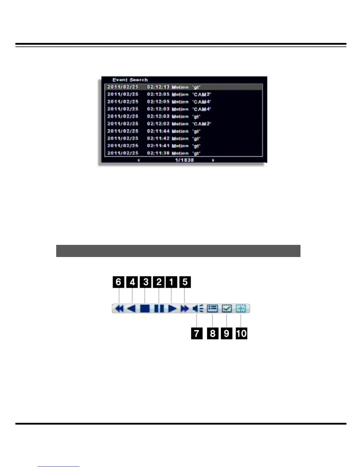 [5] Search : If you click “Search”, it shows the event list and if you click, it playback the relevant