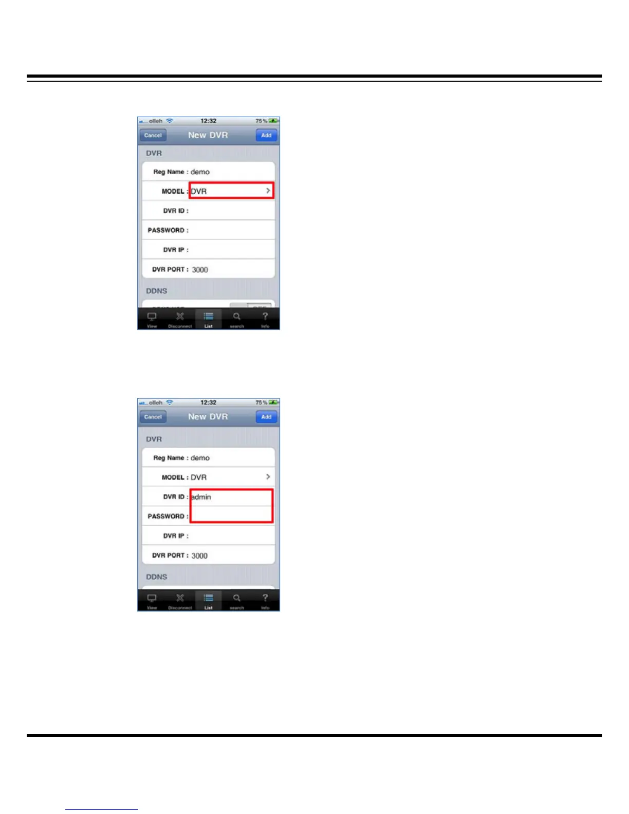 DVR ID : Input the user ID registered in the DVR