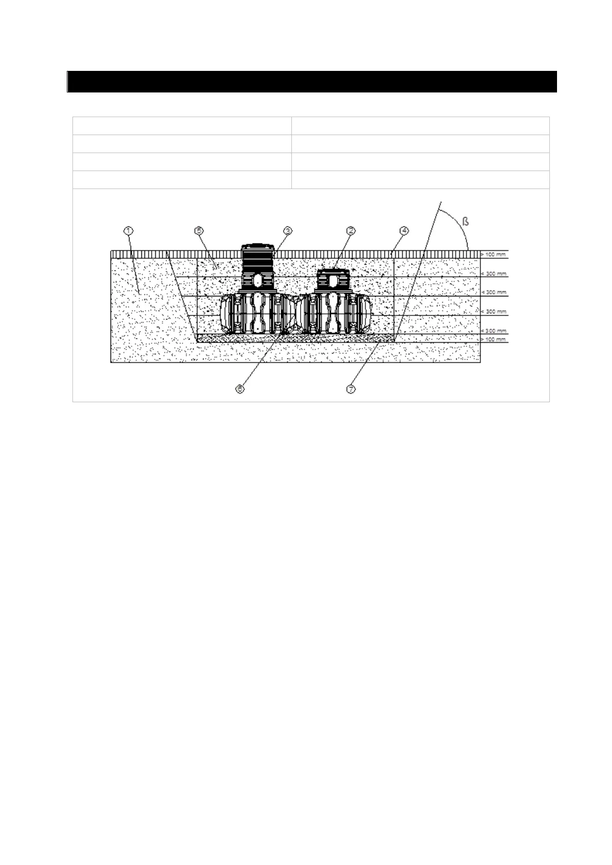 Die Tiefe der Grube muss so bemessen sein, dass die max. Erdüberdeckung (780 mm über Tankschul-