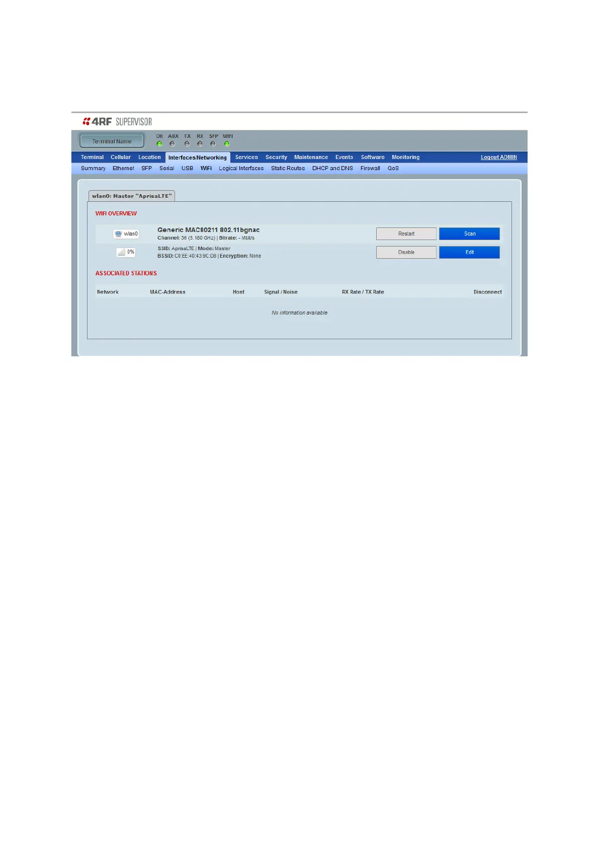 4RF Aprisa LTE - Interfaces;Networking > Wifi