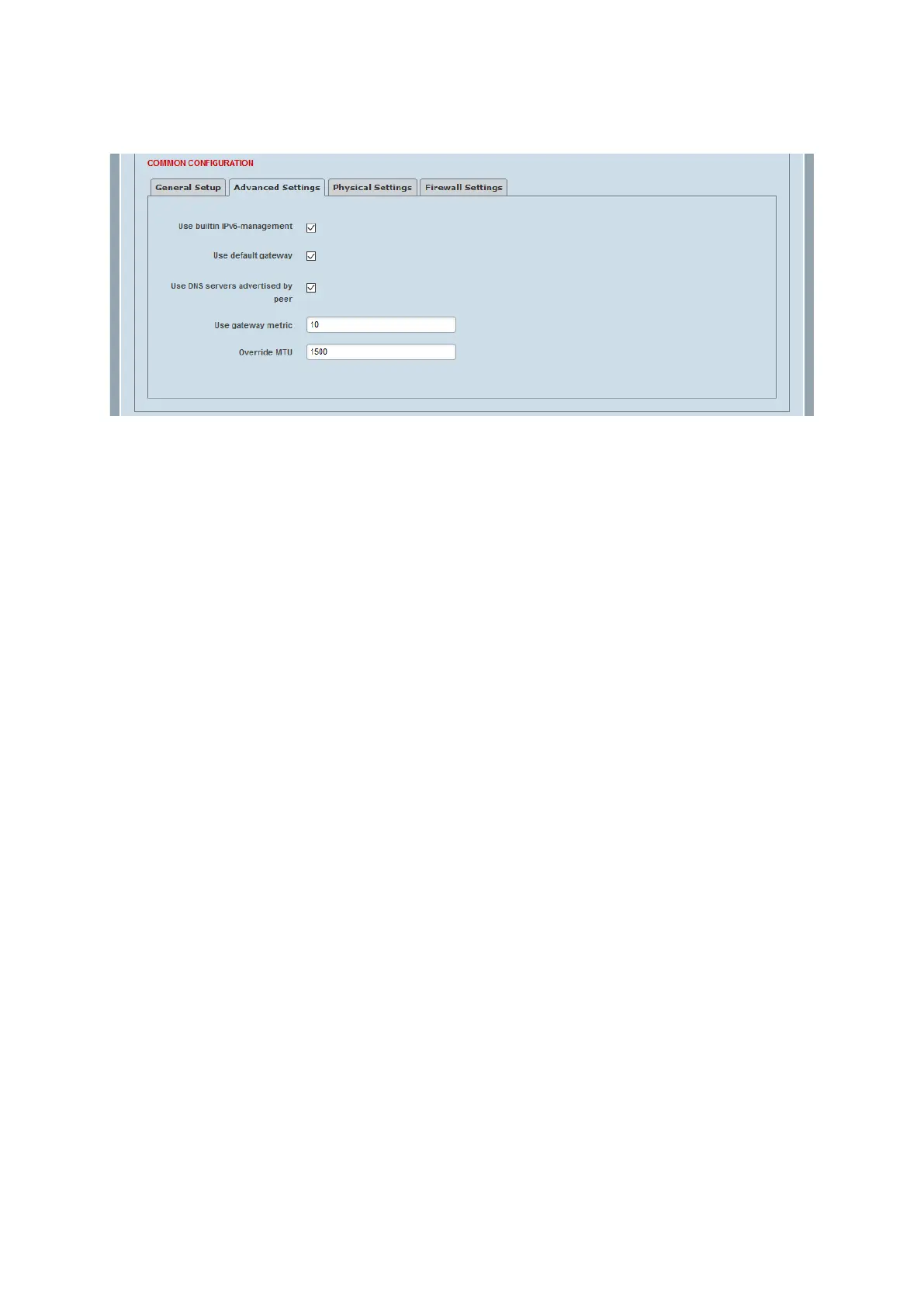 DHCP Client > Advanced Settings