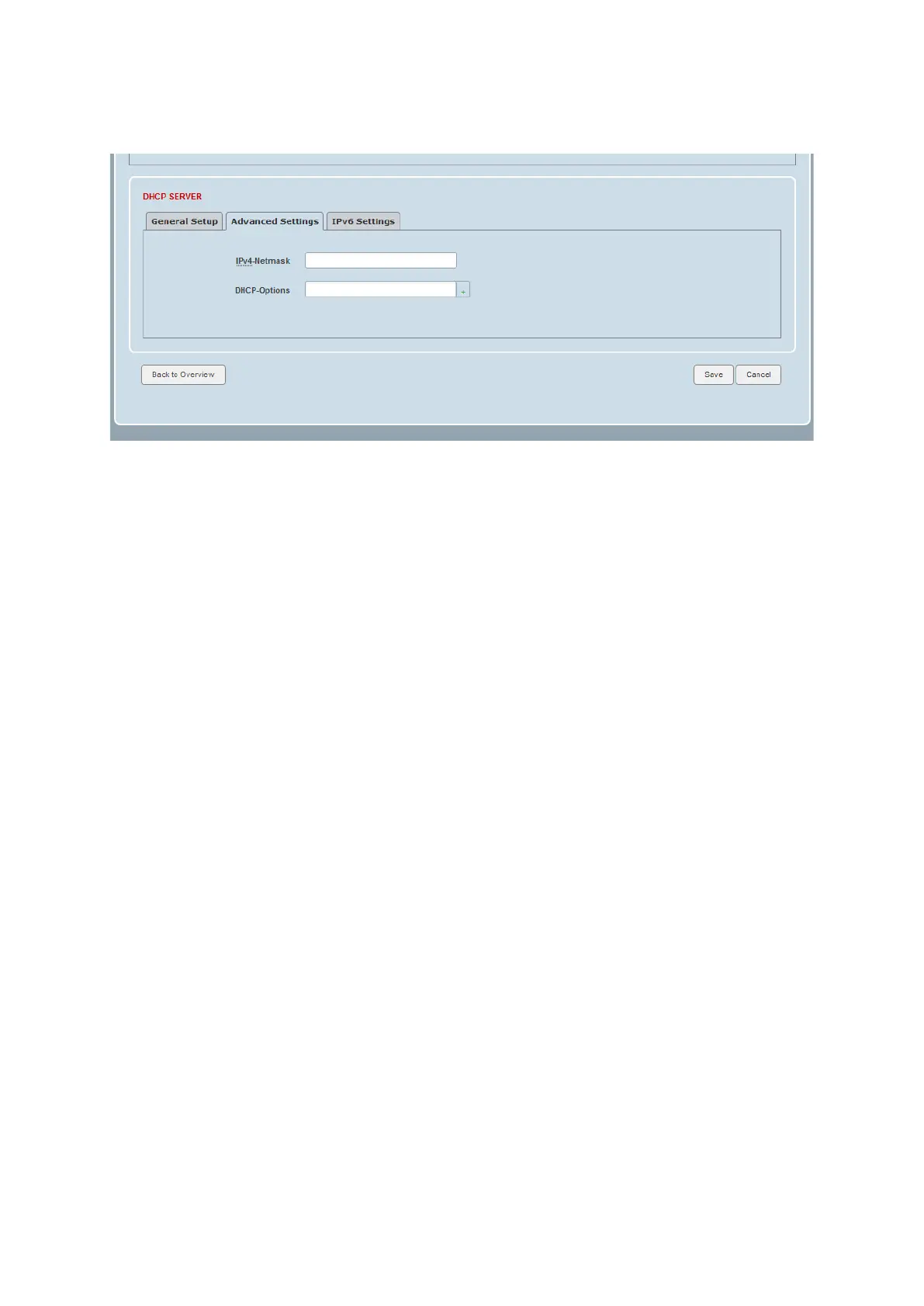 This page configures the DHCP advanced settings.
