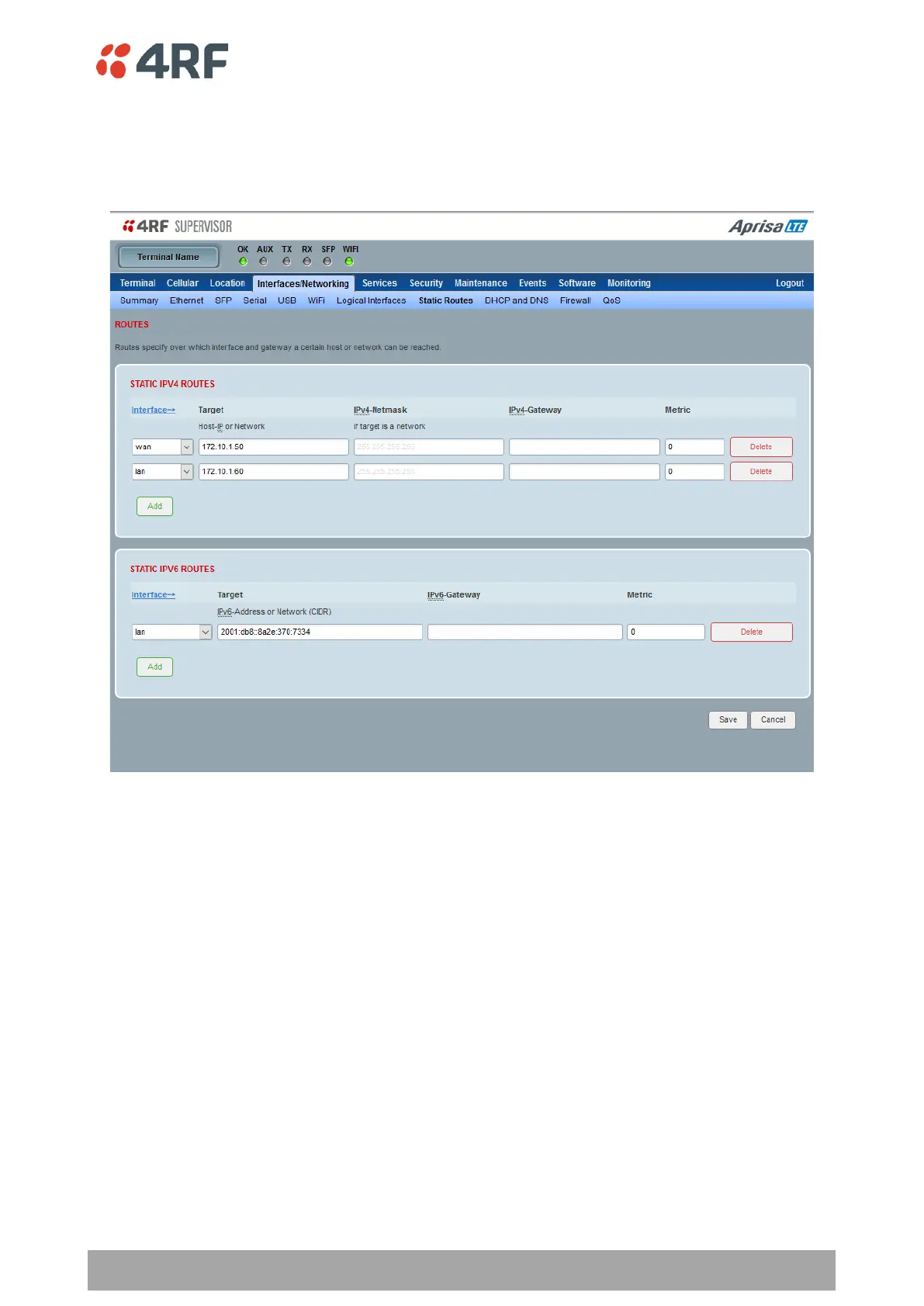 Interfaces/Networking > Static Routes