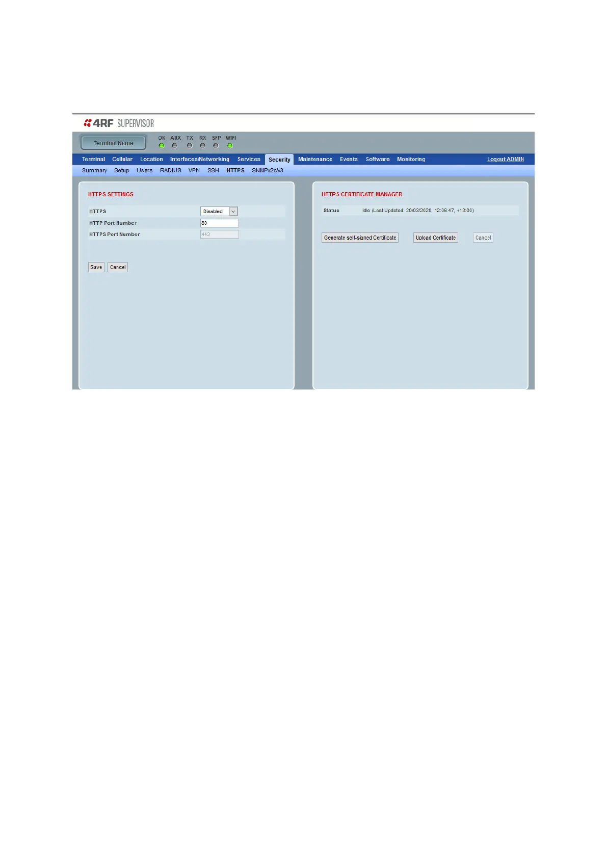 4RF Aprisa LTE - Security > HTTPS