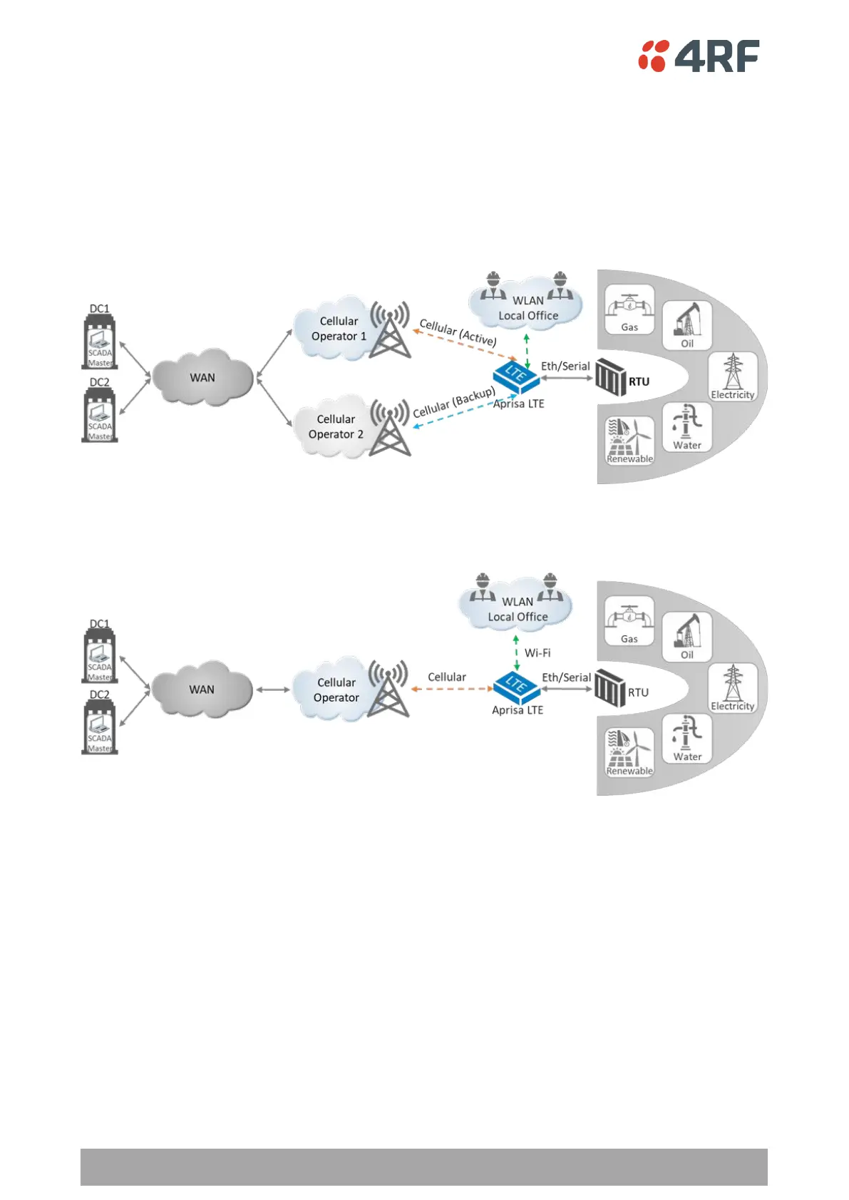 With the Aprisa LTE, smart SCADA can be supported with single or dual SIM / operator LTE connectivity using