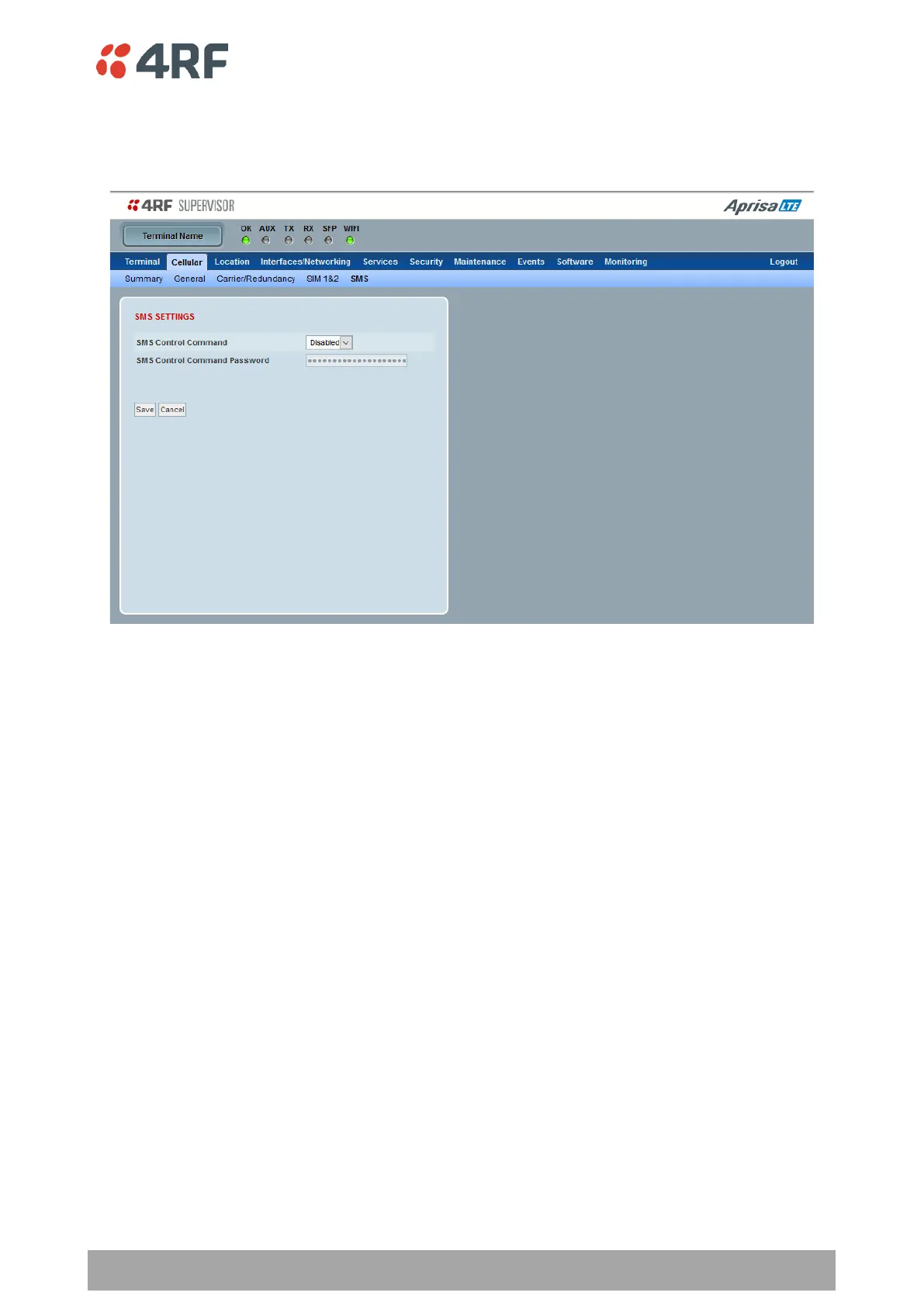 e.g. if password is ‘passabc’, then the command to reboot the Aprisa LTE using SMS will be ‘passabc reboot’.