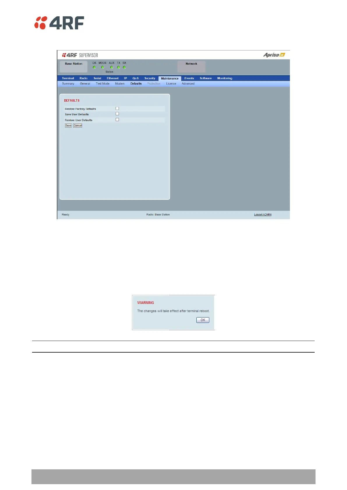 When activated, all radio parameters will be set to the settings previously saved using ‘Save User