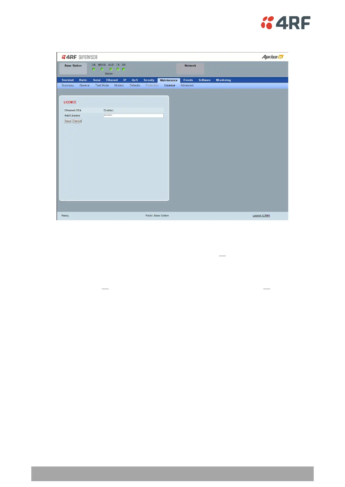 Maintenance > Licence