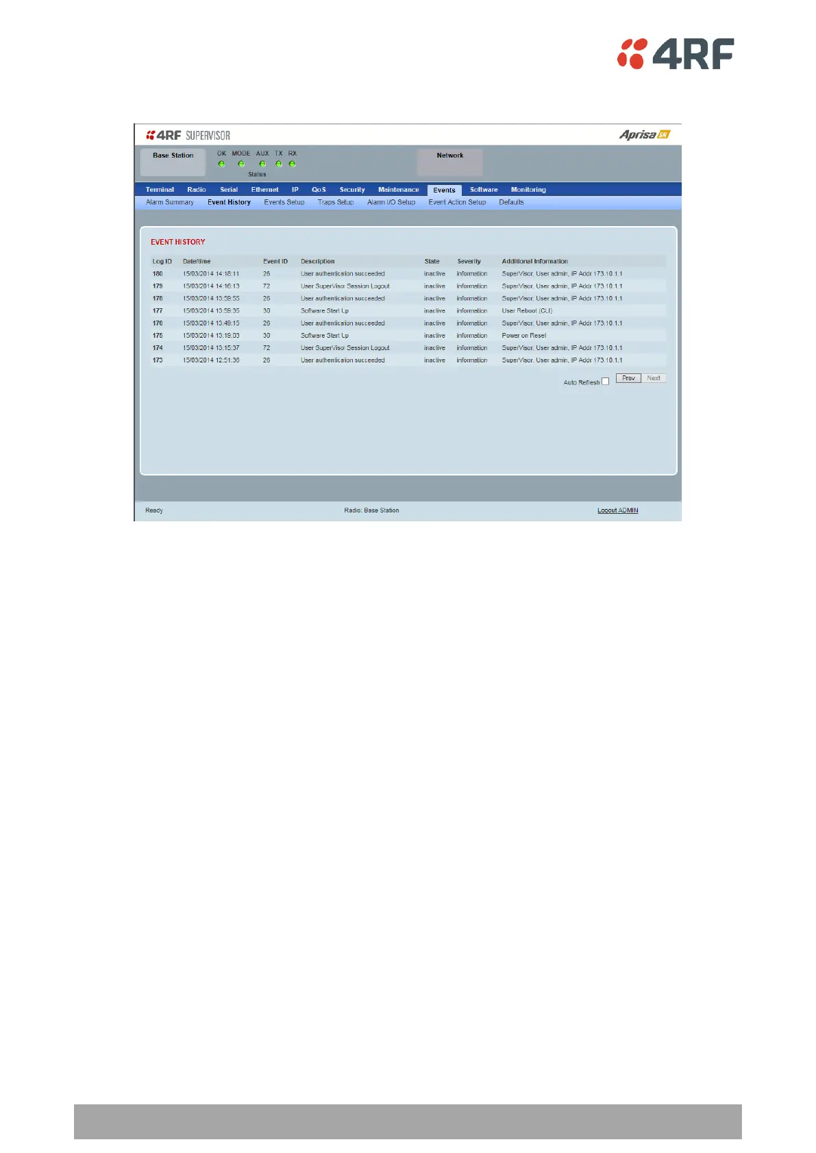 The last 50 events stored in the radio are also accessible via an SNMP command.
