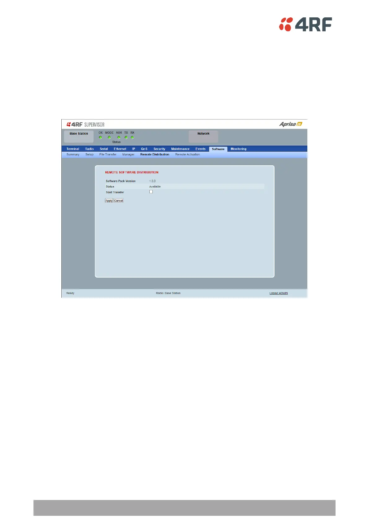 This page provides the mechanism to distribute software to all remote stations into the Aprisa SR network