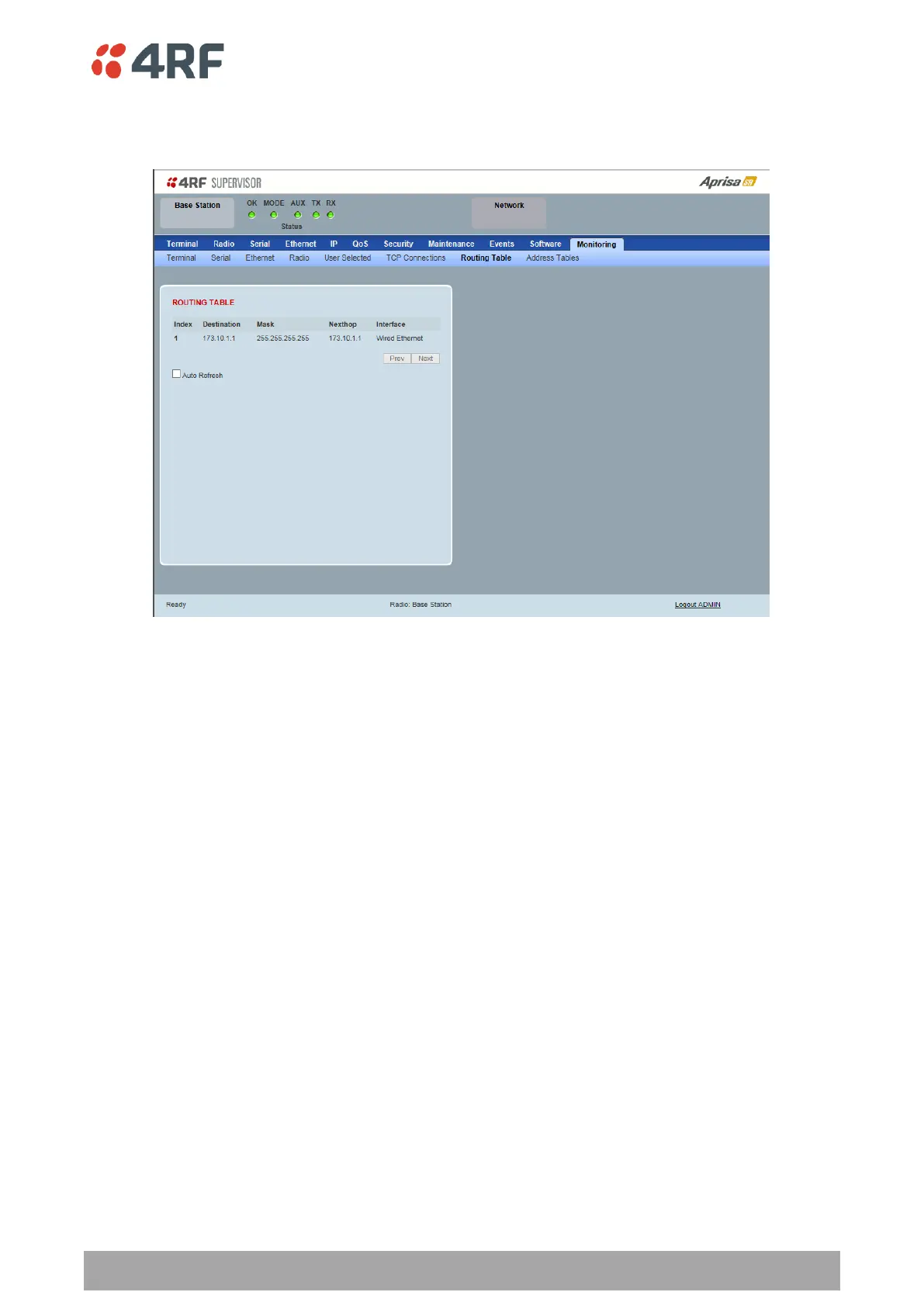 Monitoring > Routing Table