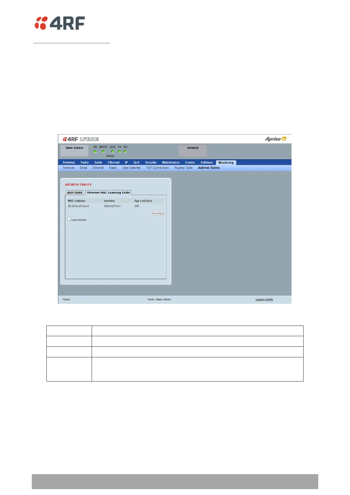 This page displays the current Ethernet Media Access Control (MAC) Address table on the radio LAN