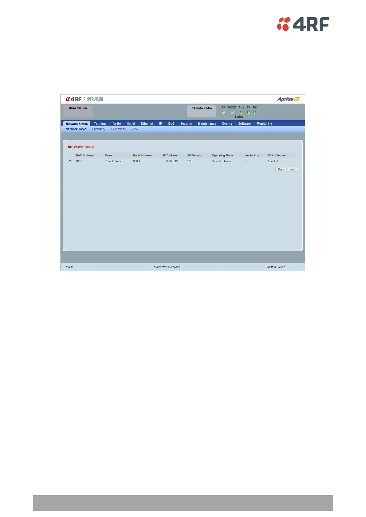 This Network Table is only available when the local radio is the base station i.e. SuperVisor is logged into