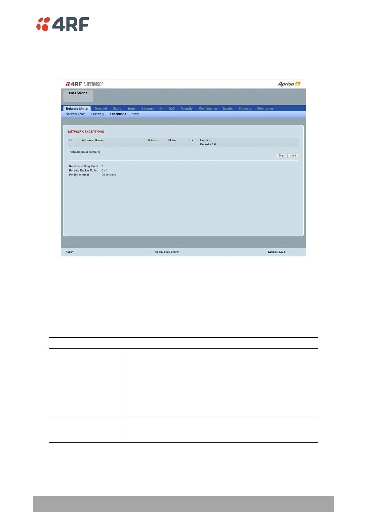 A network poll will start when any of the Network Status pages are opened (Summary, Exceptions or