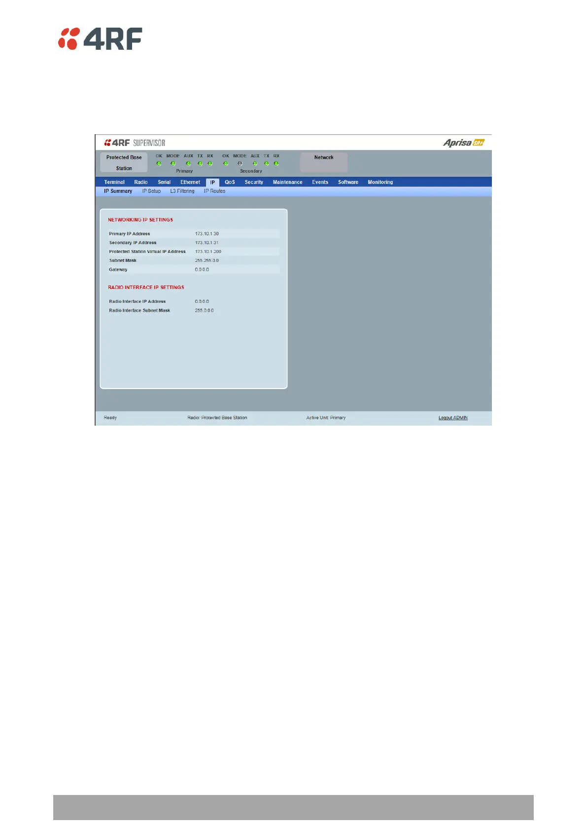 Protected Station: IP > IP Summary