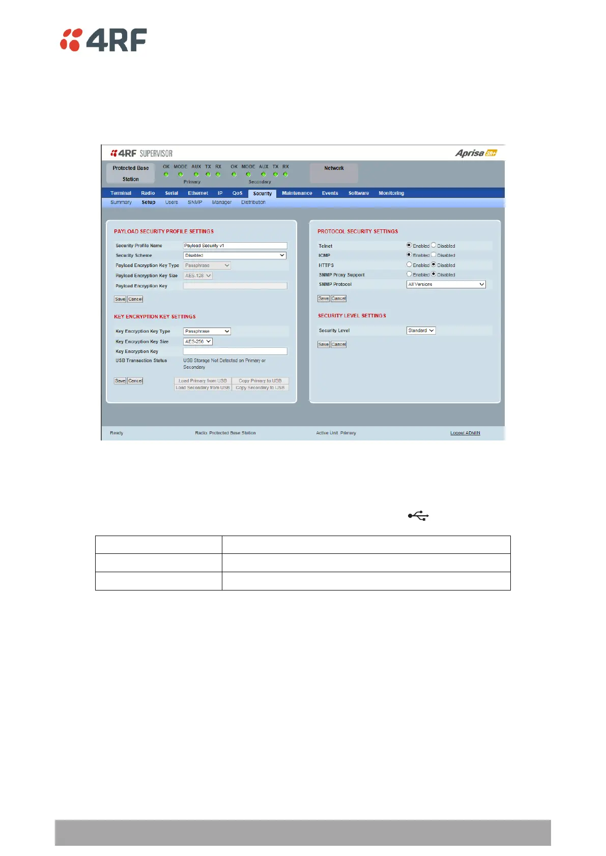 The ‘Load Primary From USB’ button loads the Key Encryption Key settings from the primary radio USB