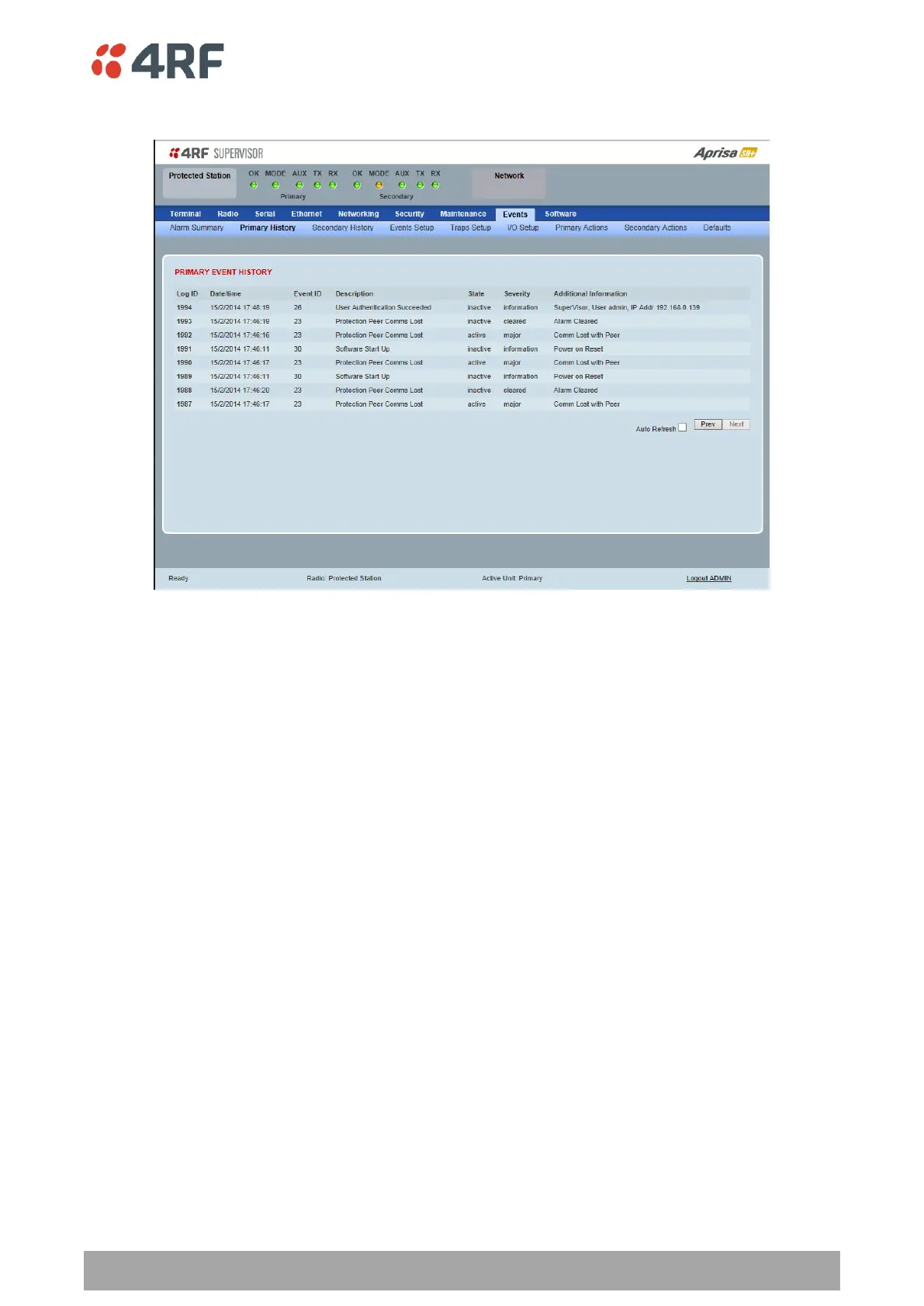 See ā€˜Events > Event History’ on page 166 for parameter details.