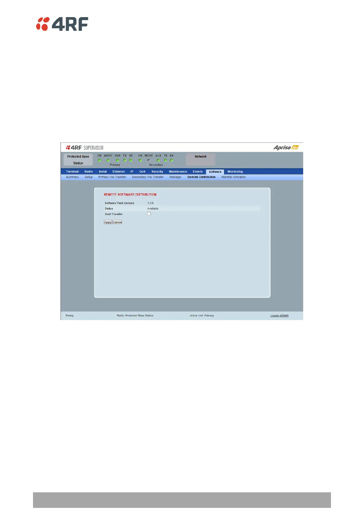 This page provides the mechanism to distribute software to all remote protected stations into the Aprisa