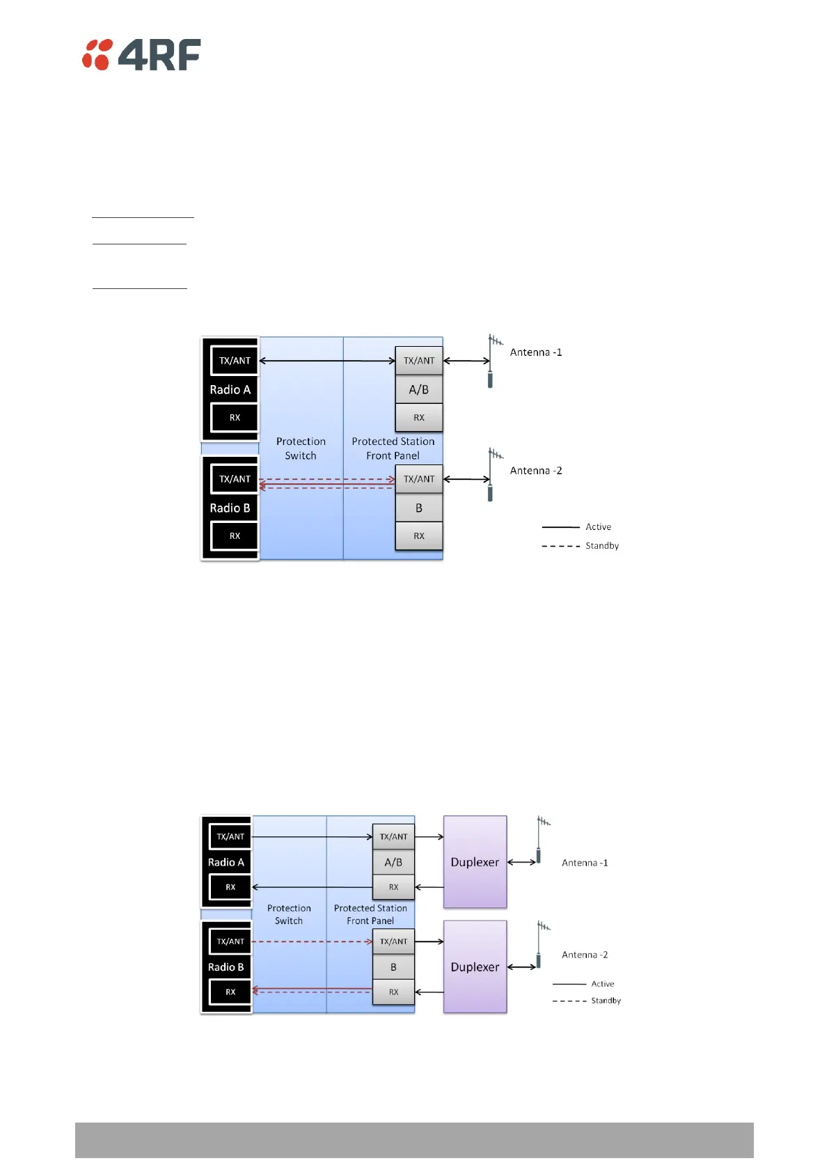 Mode), the standby radio RX/TX can be fault monitored. This mode has a 1 dB loss in RX sensitivity.