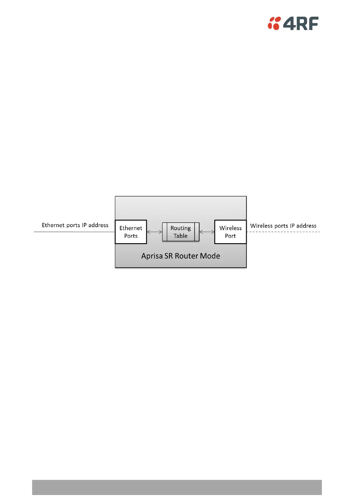 Aprisa SR router mode (see figure below), enables the routing of IP packets within the Aprisa SR wireless