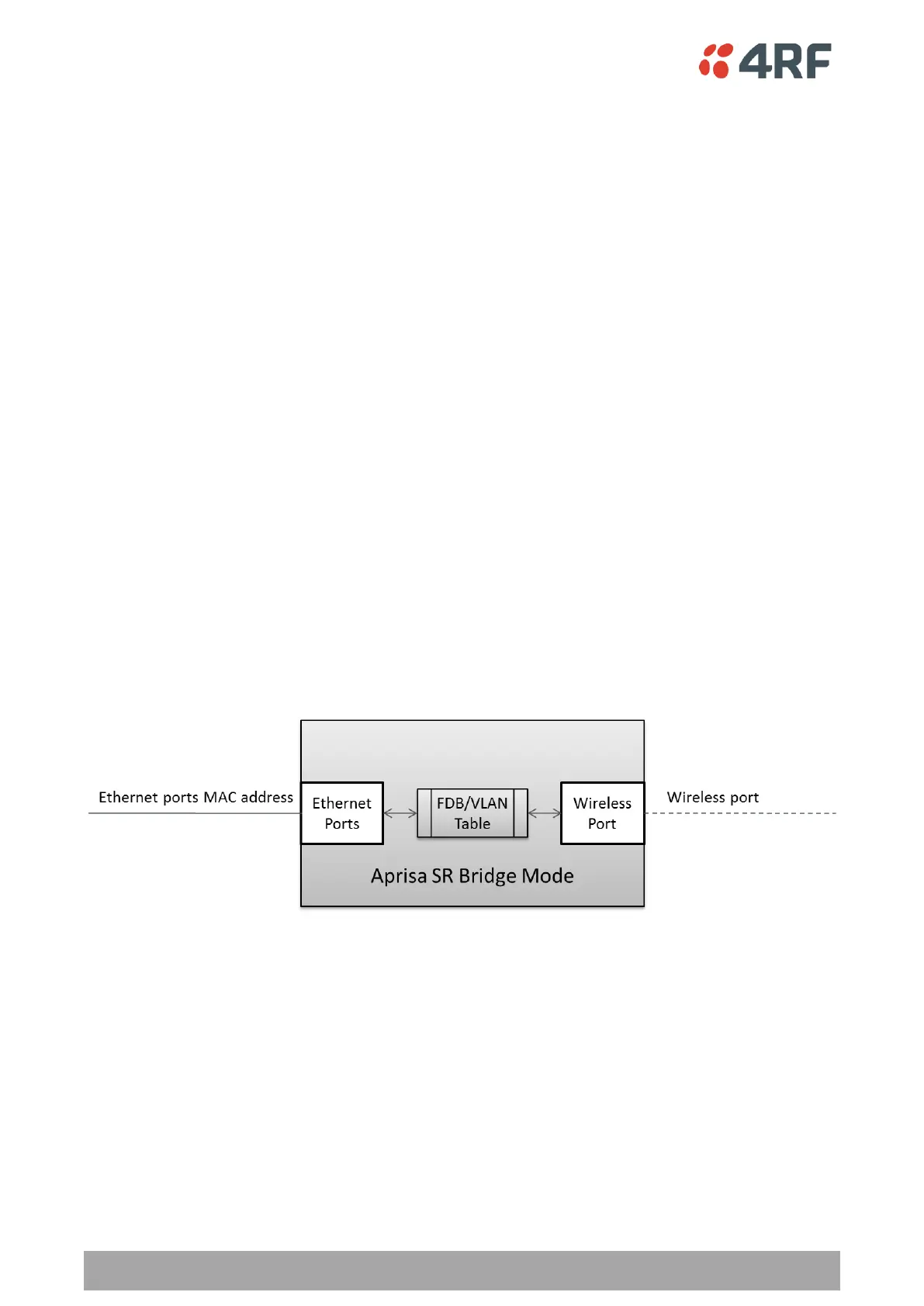 The Aprisa SR in Bridge mode of operation is a standard Ethernet Bridge based on IEEE 802.1d or VLAN