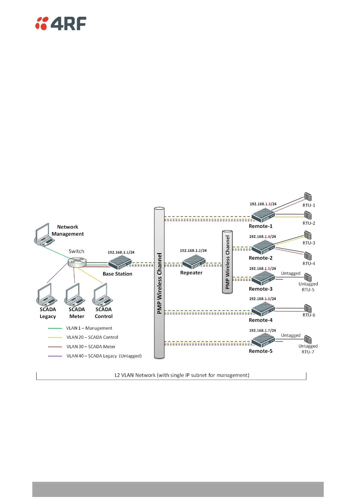 network. An example of VLAN isolation of traffic type is shown in the figure below, where RTUs #1, 4 and
