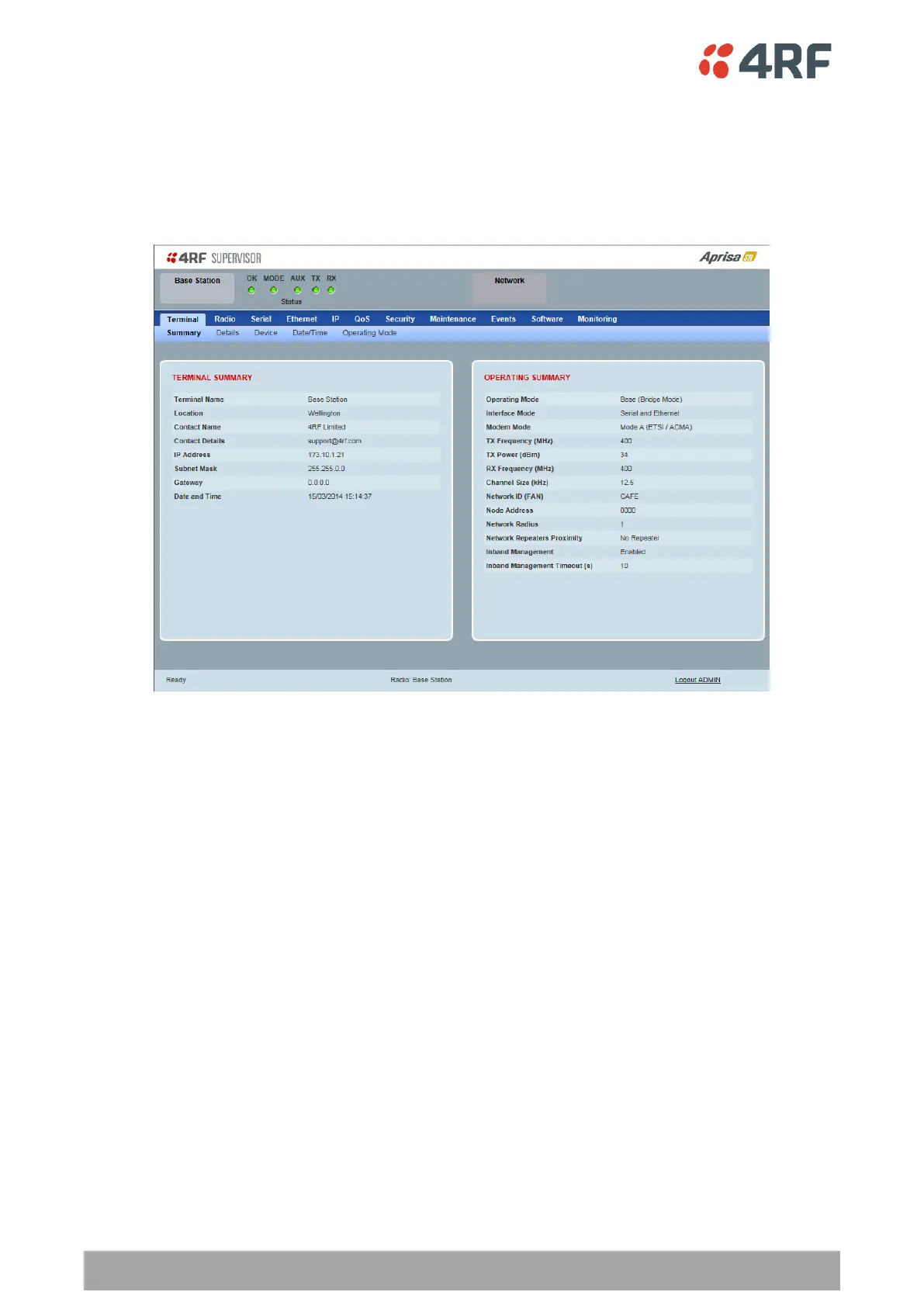 This parameter displays the current Operating Mode i.e. if the radio is operating as a base station,