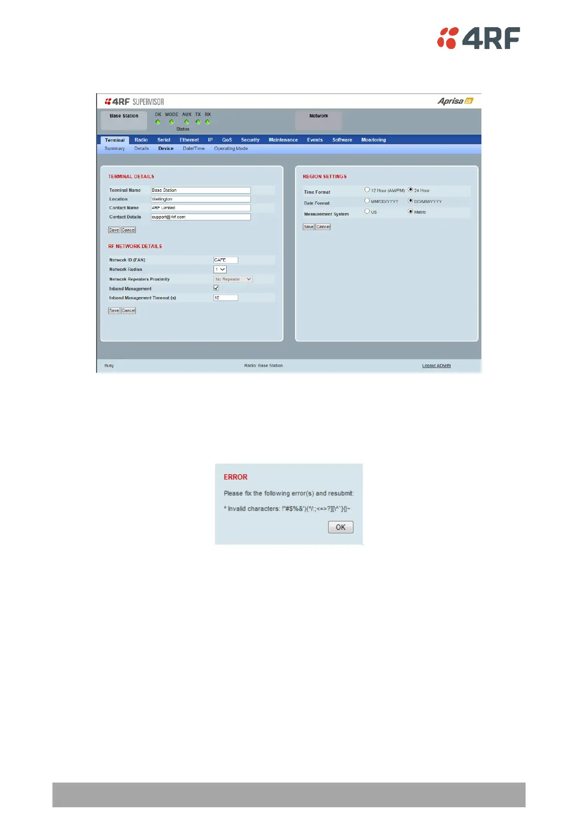 3. Enter a Contact Name. The default value is ‘4RF Limited’.