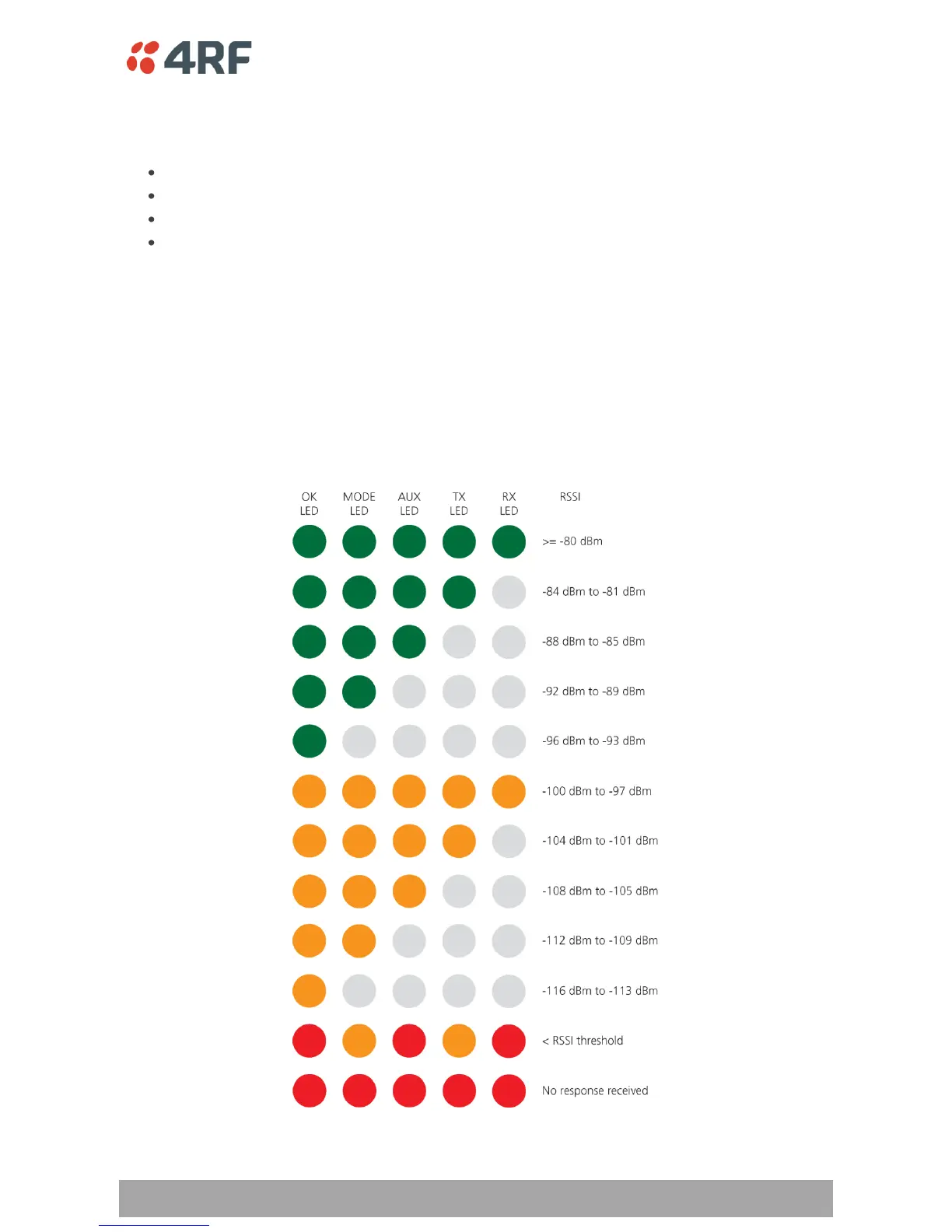 In Test Mode, the LED Display panel presents a real time visual display of the RSSI. This can be used to