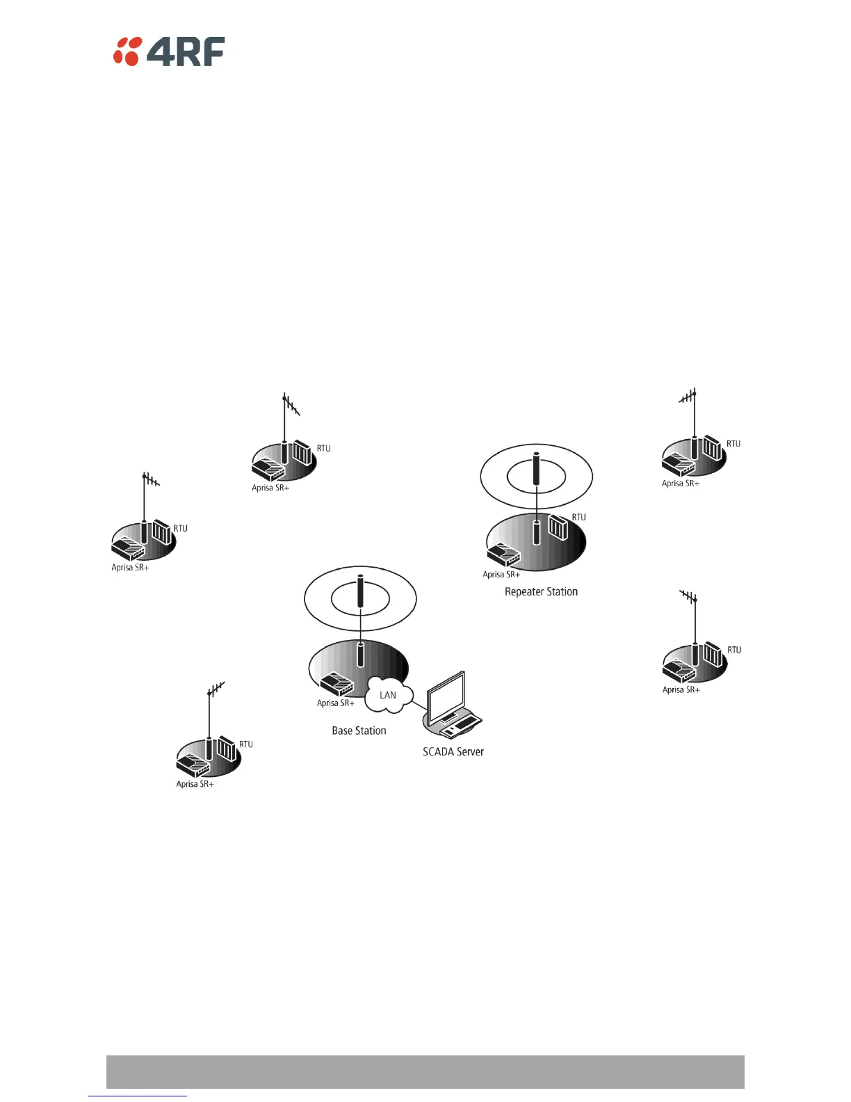 RTUs requiring control and data acquisition. A repeater is deployed to service remote sites beyond the