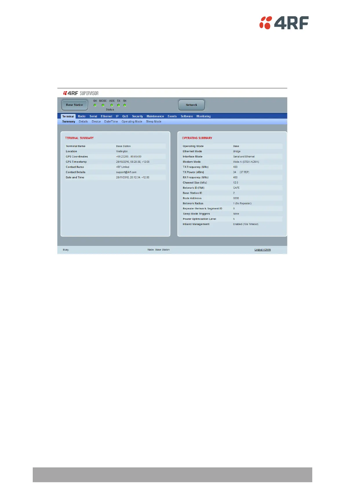 This parameter displays the current Operating Mode i.e. if the radio is operating as a base station, repeater