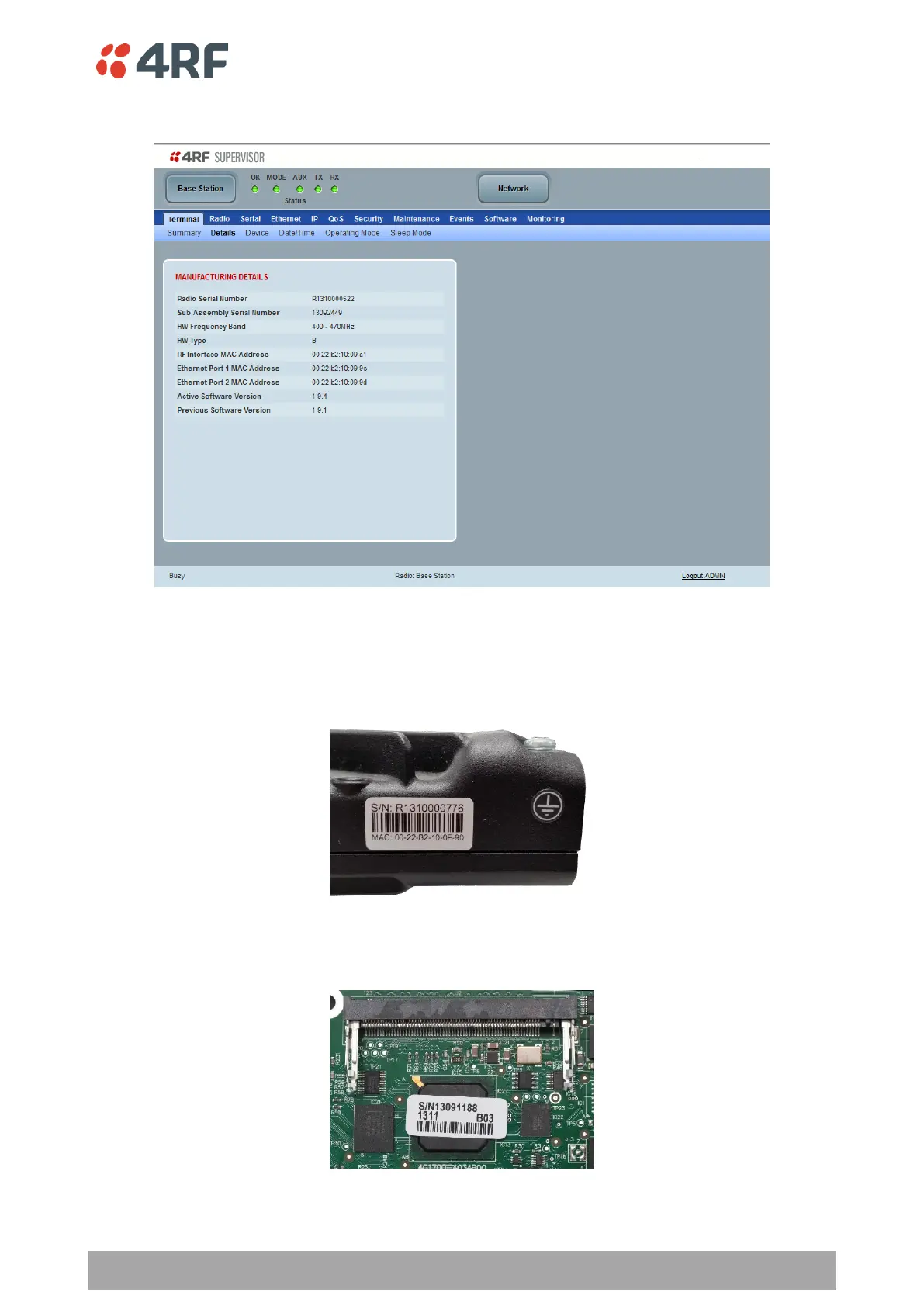 This parameter displays the Serial Number of the radio (shown on the enclosure label).