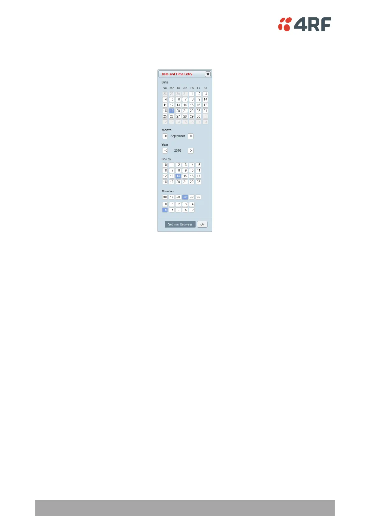 The ‘Set from Browser’ button sets the date and time directly from the browser date and time.