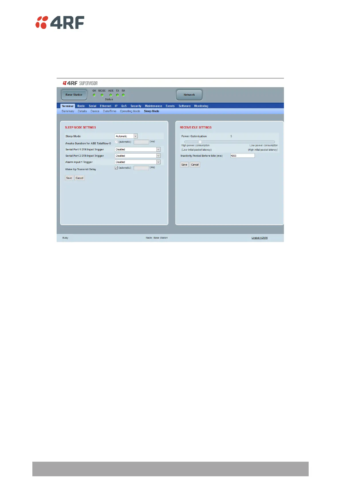 Sleep Mode is a feature of Type B Aprisa SR+ radios. This page is only visible when the radio is of Type B
