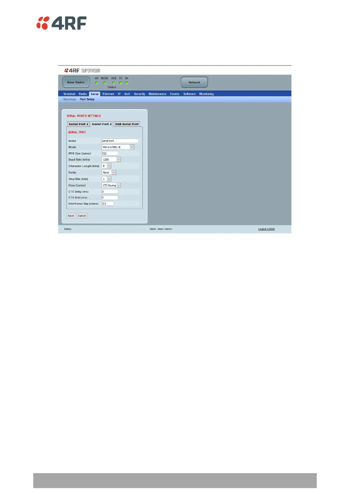 This menu item is only applicable if the serial port has an operating mode of Mirrored Bits.