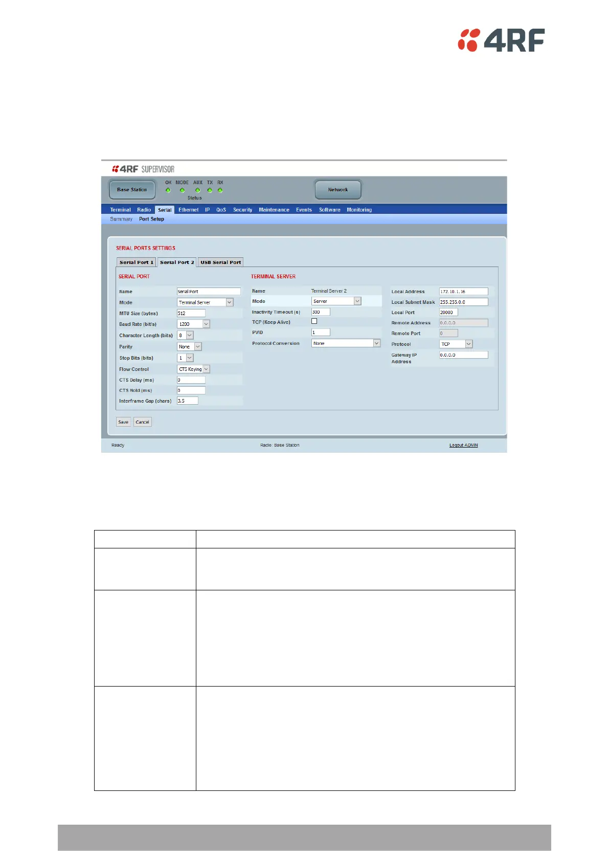 This menu item is only applicable if the serial port has an operating mode of Terminal Server.