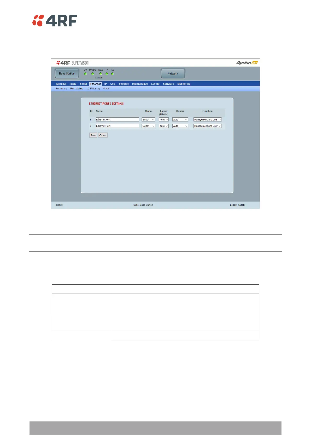 Ethernet > Port Setup