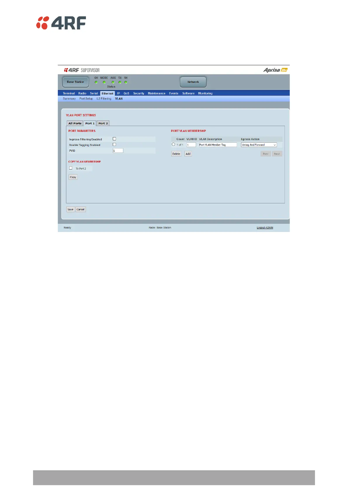 If the Ingress Filtering is disabled, the Aprisa SR+ supports ‘Admit All Frames’ so that all frames tagged,