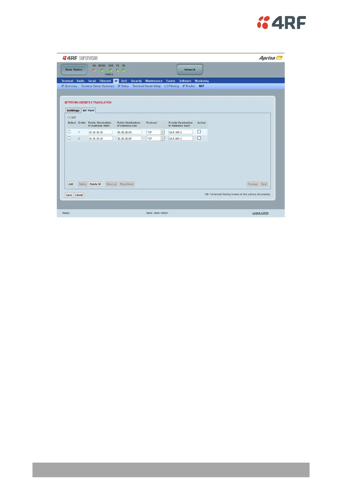 for the selected public interface which in this case is the RF port. NAT will perform the IP address translation