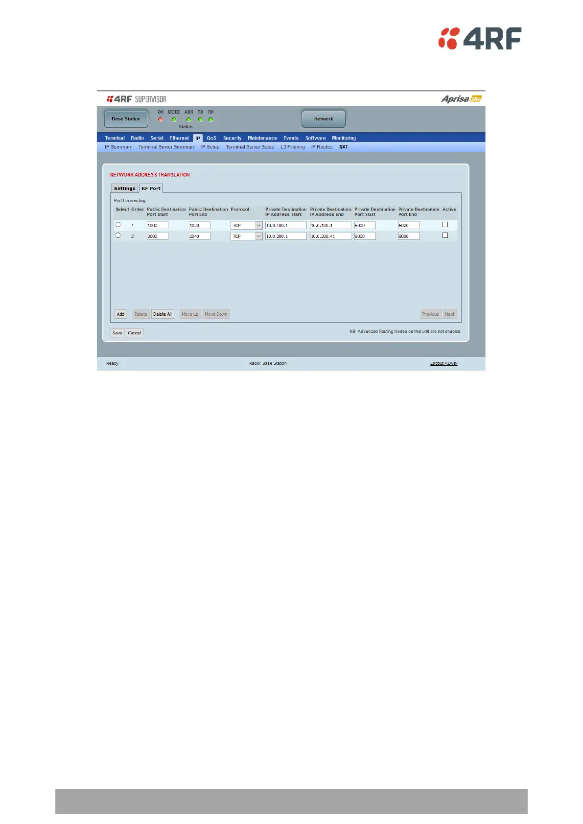 When the RF Port is selected as the public interface, then the inbound NAT session is from the radio RF port