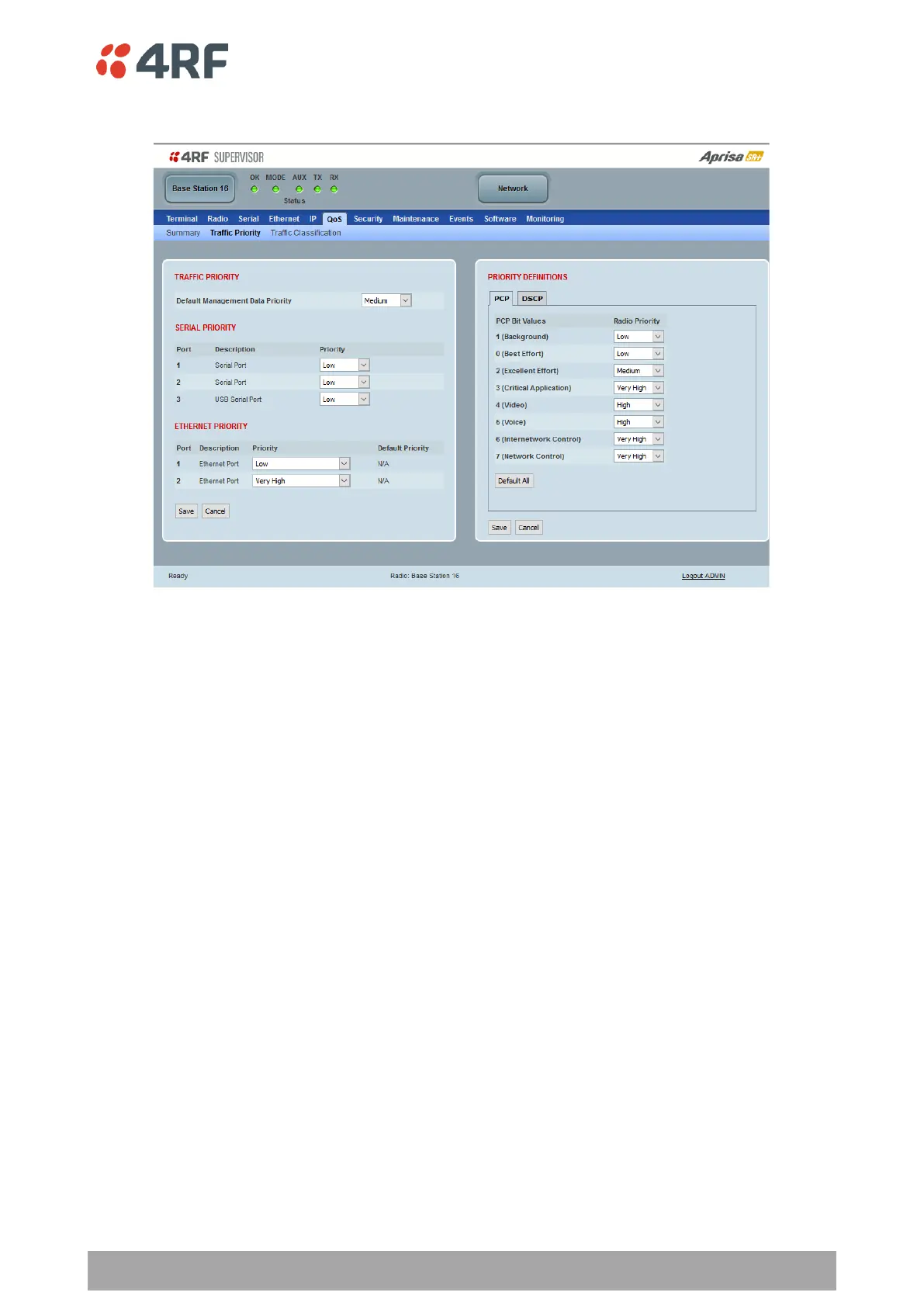 Ethernet customer traffic. It can be set to Very High, High, Medium and Low. The default setting is Medium.