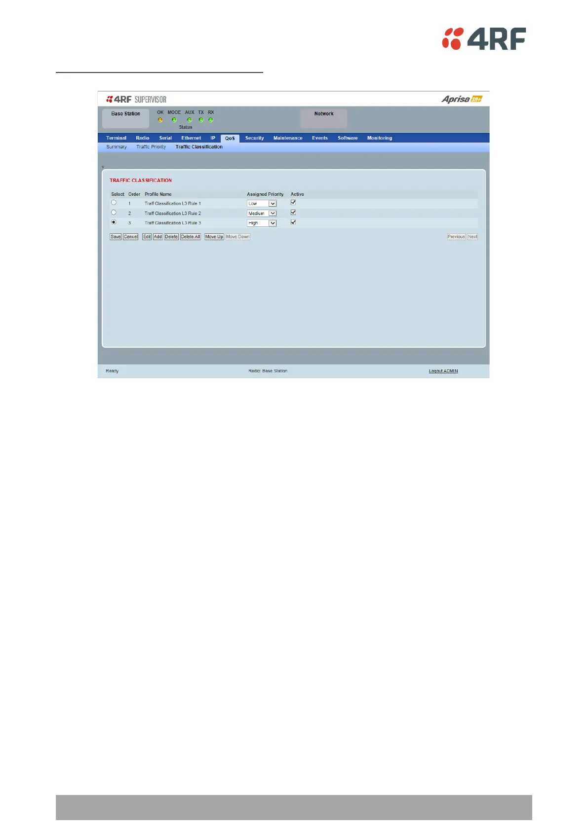 identified in the radio network by its associated CoS / priority to provide the appropriate QoS treatment.