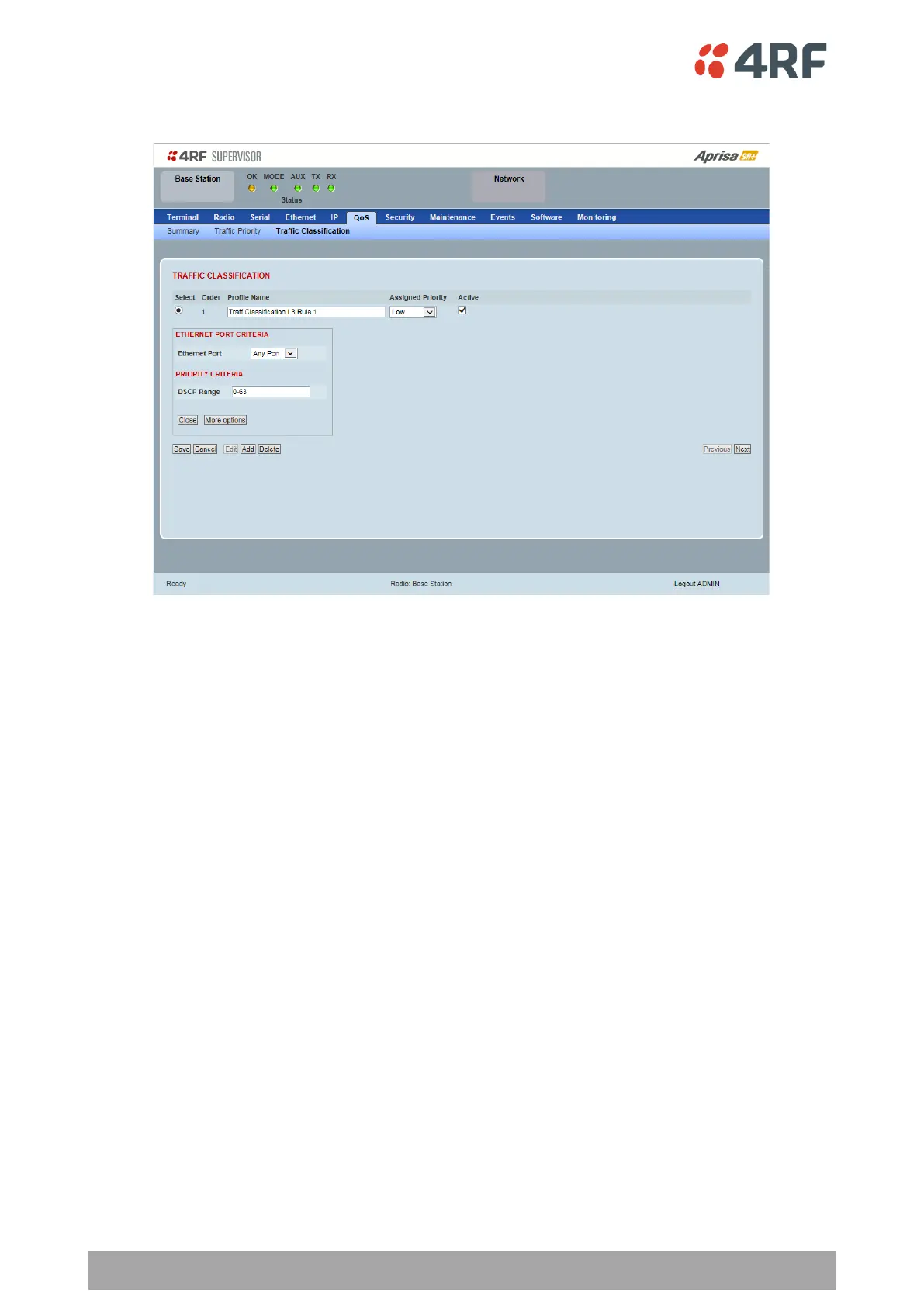 To edit a traffic classification, select the profile and click on the Edit button