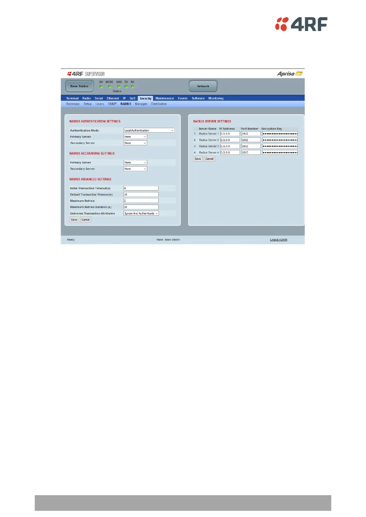 Alternatively, for Admin level only, for a RADIUS server to respond to the radio, it must be configured with