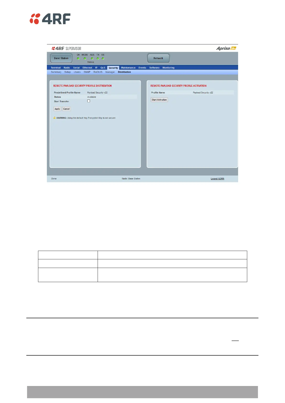 Note: The distribution of the payload security profile to remote radios does not stop customer traffic from