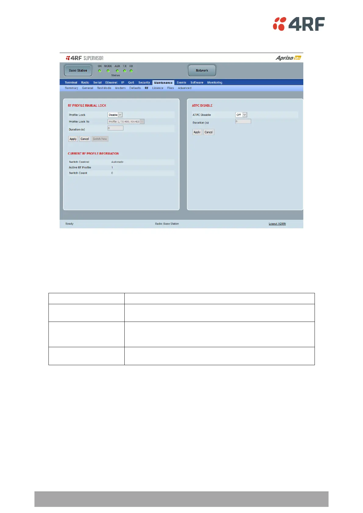 Maintenance > RF